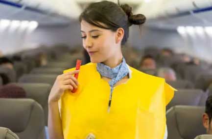 비행기에 탑승하면 이륙 전 안전수칙에 대한 안내 방송과 승무원의 시범이 진행됩니다.